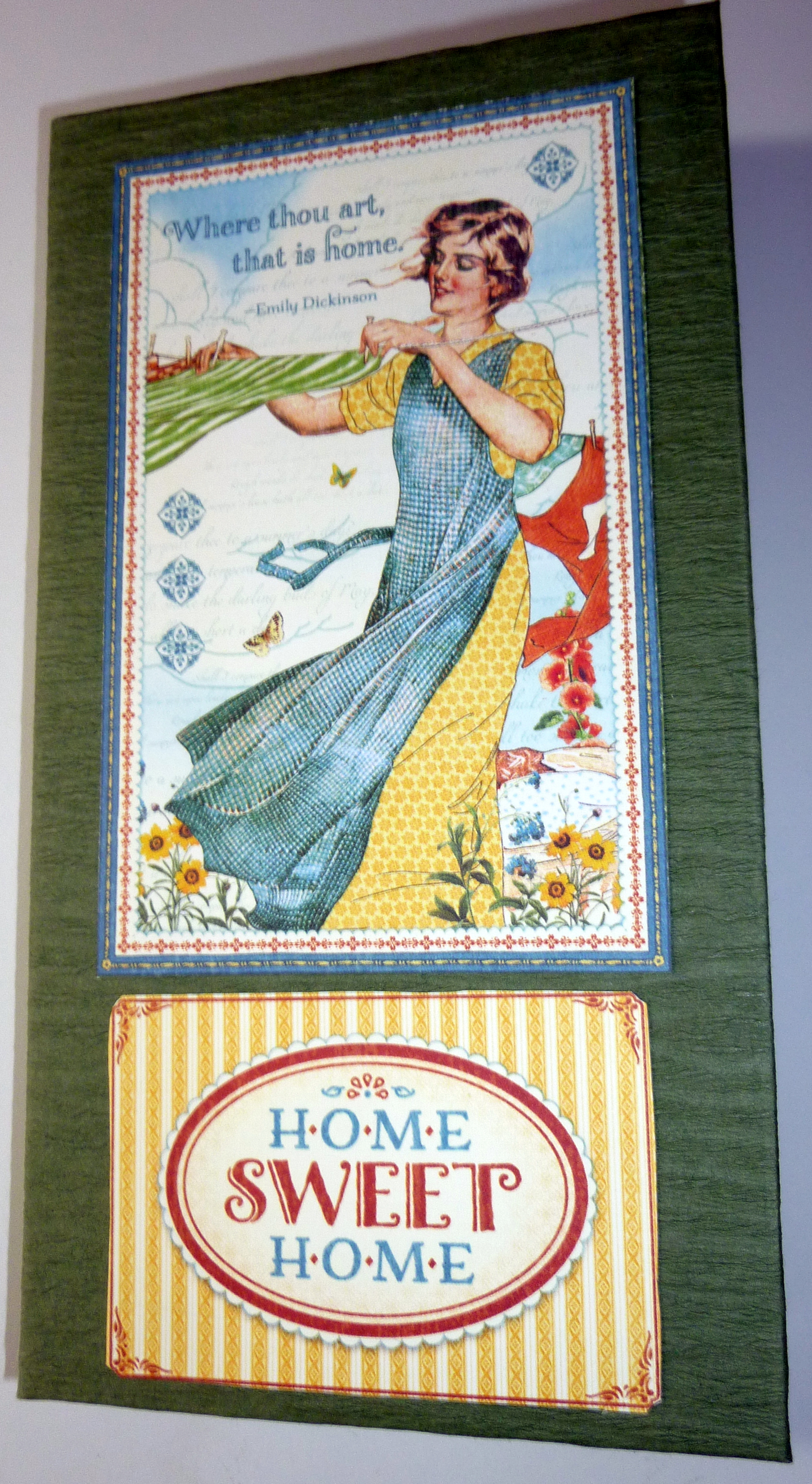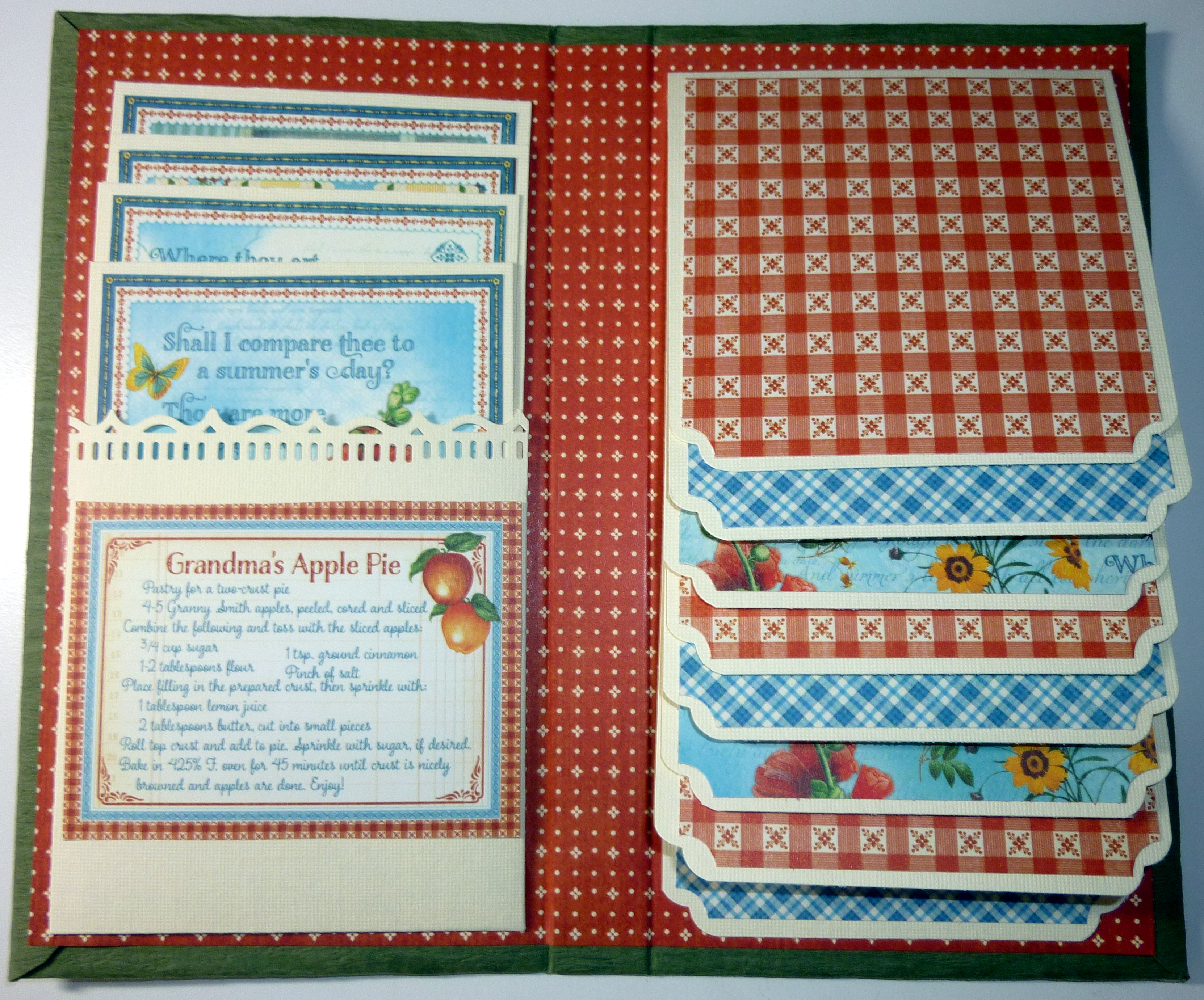 This is a Waterfall Folio that was designed by “My Sister Scrapper” on YouTube. The title of the video is “Graphic 45 Waterfall Folio Tutorial“. It is very easy to make and takes about an hour to put together. I used “Grafix Medium Weight Chipboard Sheets, 12-Inch by 12-Inch, Natural, 25-Pack” from Amazon. I also used a Graphic 45 “Home Sweet Home” paper pad. The textured cardstock on the front and back is from Michaels. The eggshell cardstock is from Hobby Lobby – individual 12 by 12 sheets.
