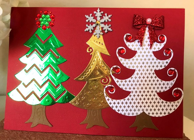 Stylized Trees Spellbinders Christmas Card Dec3 This is a 5″ by 7″ card. The die is Spellbinders S5-238 Stylized Trees.