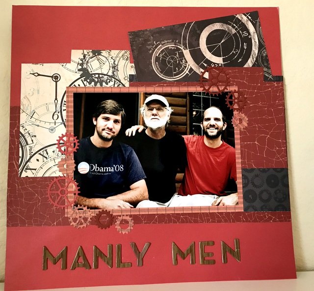 This is a 12 by 12 Scrapbook page of my brother Tim and his two sons Joshua and Ben. The die used was Spellbinders S2-292 Gears.
