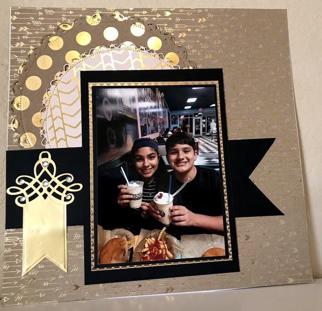 This is a 12 by 12 Scrapbook page of my Great Niece and Nephew. The dies used were Spellbinders S5-258 Decorative Swallowtail Tags and Spellbinders LF-015 Grand Decorative Circles One.