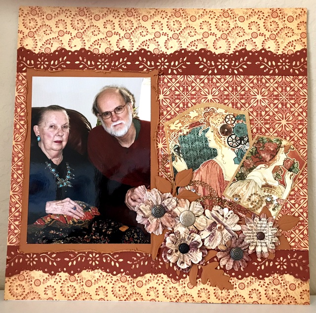 This is 12 by 12 scrapbook page of my sweet mother and wonderful, creative brother. The pattern paper is from Graphic 45.