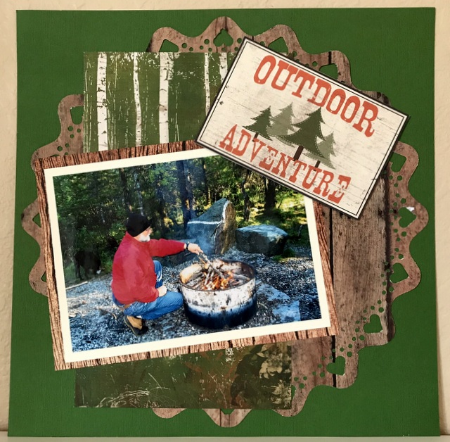 This is a 12″ by 12″ scrapbook page of my brother starting a fire in the forest around Juneau, Alaska.