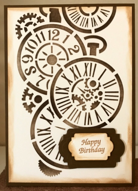 This is a 5″ by 7″ card. The cardstock is “Ivory”, “Warm Cocoa” and the ink is “Honey Mustard” by Gina K Designs. The die is Spellbinders “Foundational Tags”.