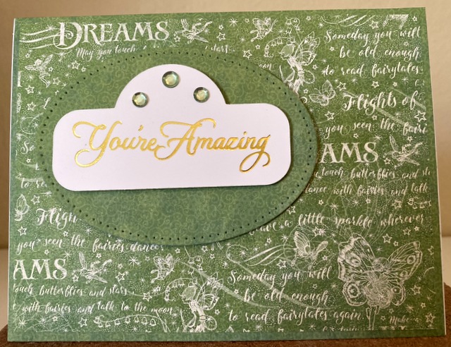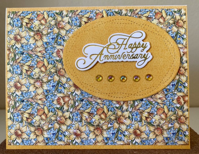 This is a 5″ by 6 1/2″ card. The pattern paper is from Fairie Wings Collection by Graphic 45 – page “Daffodil Dance”. Stay home and stay safe. Have a wonderful Wednesday!
