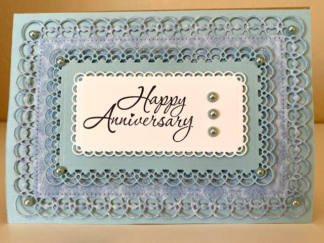 This is a 5″ by 7″ card. The die used is Spellbinders 5 x 7 Detailed Scallops. Please wear a mask when you go out and have a wonderful Friday!