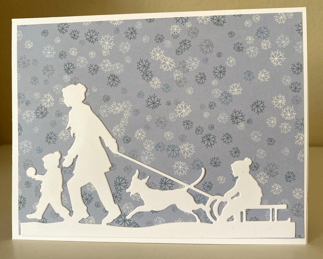The card is 5″ by 6 1/2 “. The die is” Sledding” by Spellbinders. Please wear a mask when you go out and stay safe. Happy Holidays!