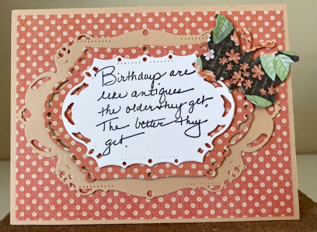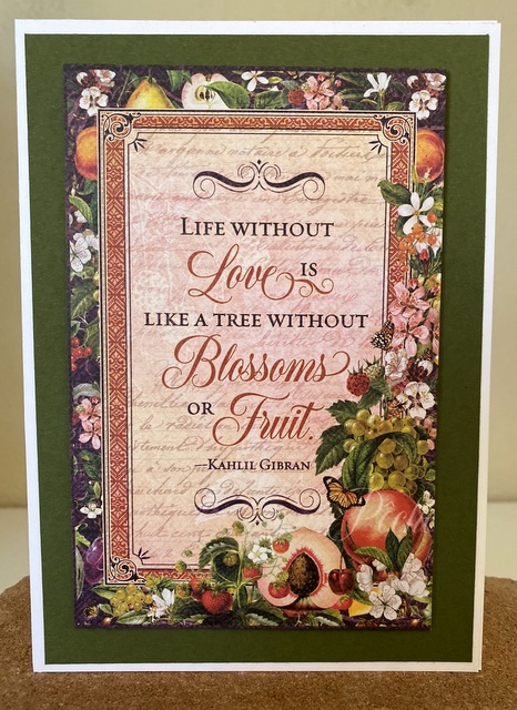This card is 5″ by 7″. The card was made using a 4″ by 6″ Journaling Card from a Graphic 45 collection.