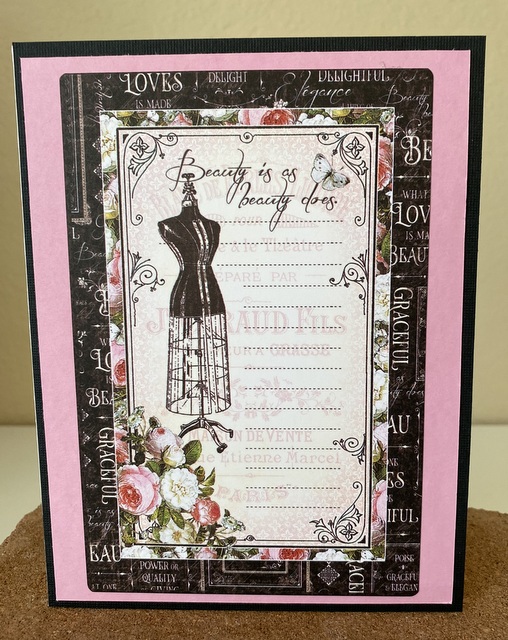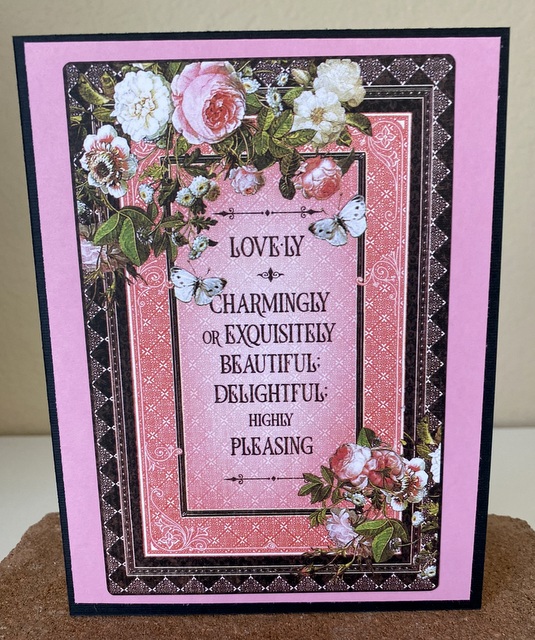 This card is 5″ by 61/2″. The 4″ by 6″ Journaling Card is from the “Elegance” collection by Graphic 45.