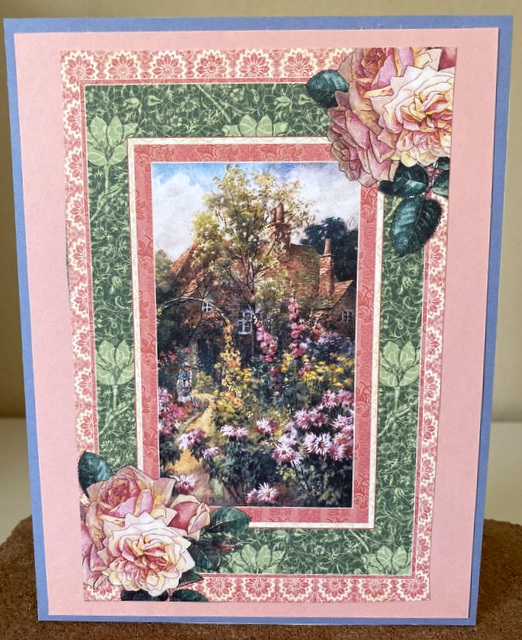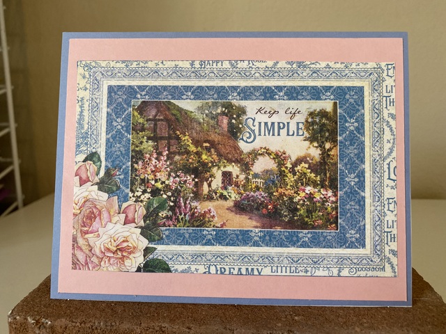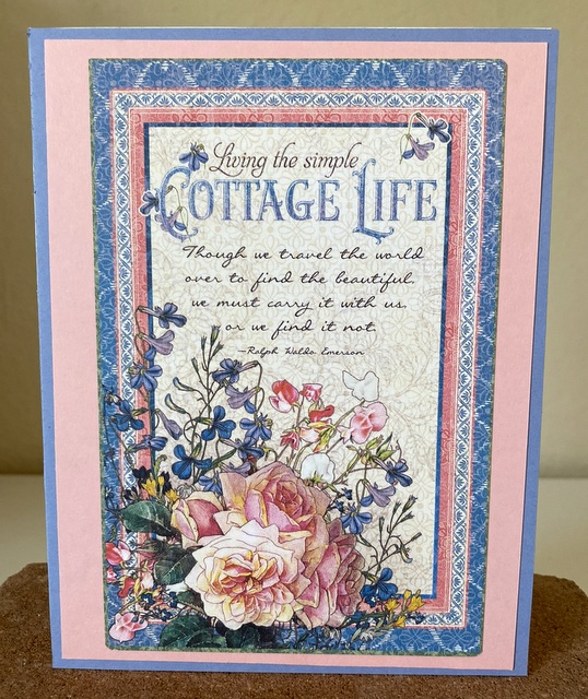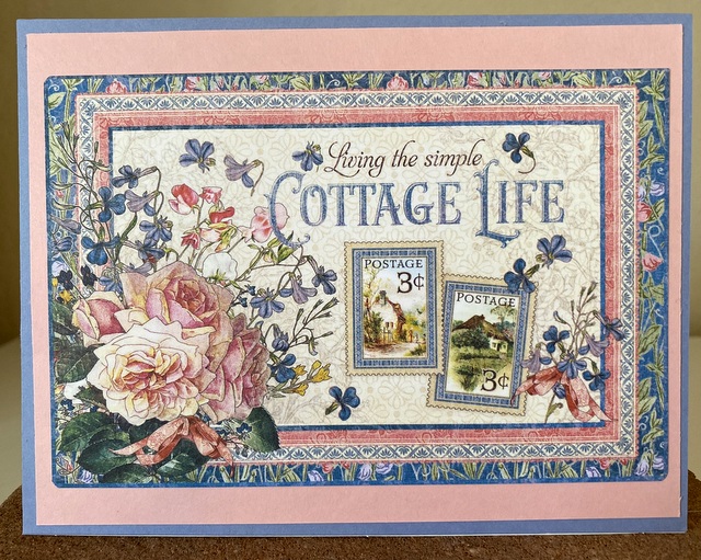 This card is 5″ by 61/2″. The 4″ by 6″ Journaling Card is from the “Cottage Life” collection by Graphic 45.