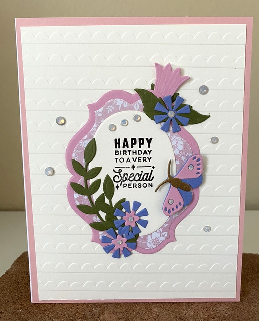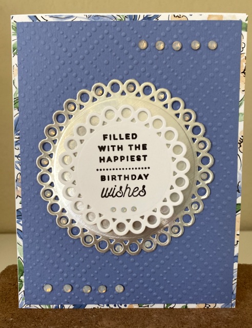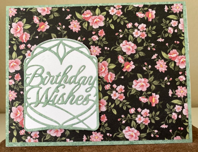 The card is 5″ by 6 1/2″ card. The die is from Spellbinders.