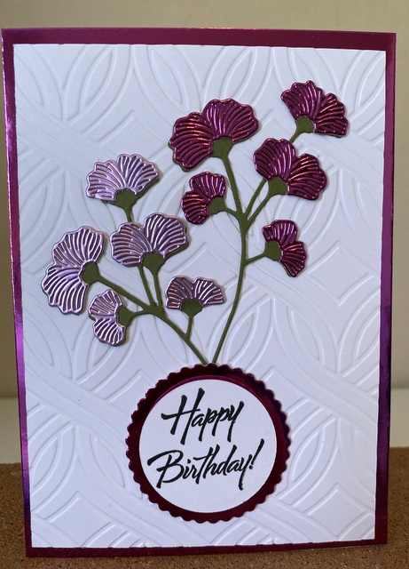 New Spellbinders Dies Card #4 Nov9 This card is 4″ by 5 1/2″. The Spellbinders die is “Sealed Gingko”,