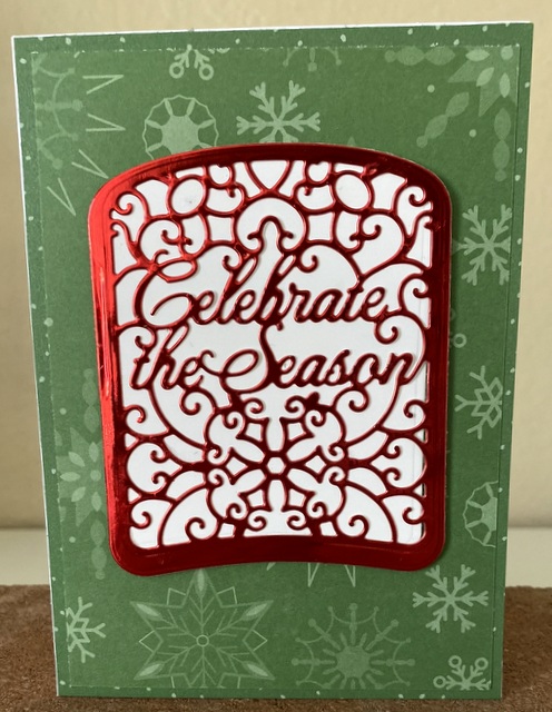 Spellbinders Holiday Card #1 Nov10 This card is 4″ by 5 1/2″. The Spellbinders die is from last year.