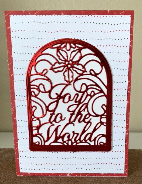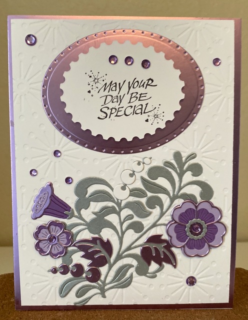 The card is 5″ by 6 1/2″. The background is a Spellbinders Embossing Folders.