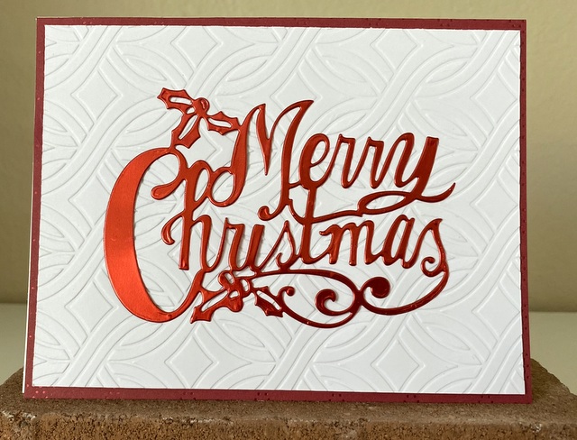 The card is 5″ by 6 1/2″. The background is a Spellbinders Embossing Folder.