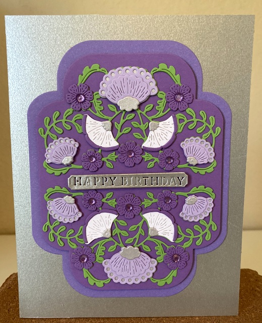 This card is 5″ by 61/2″. The dies are from Spellbinders.