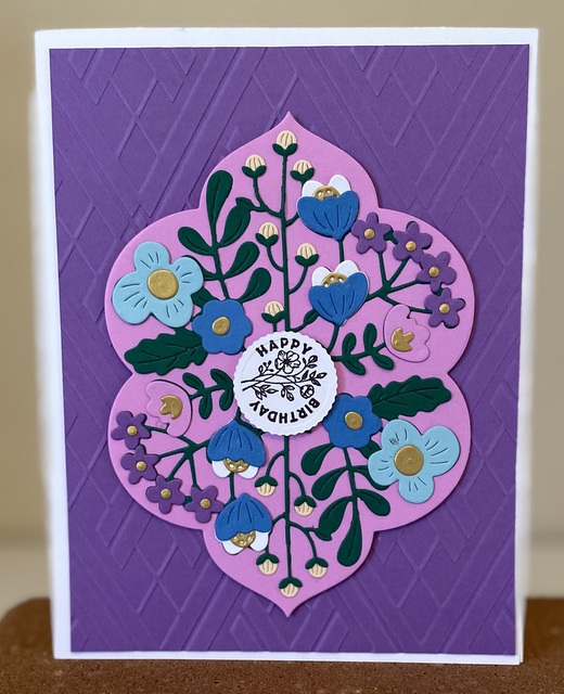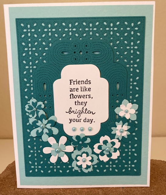 The card is 5″ by 61/2″. The die is from Spellbinders.