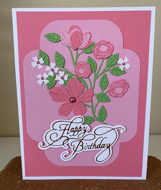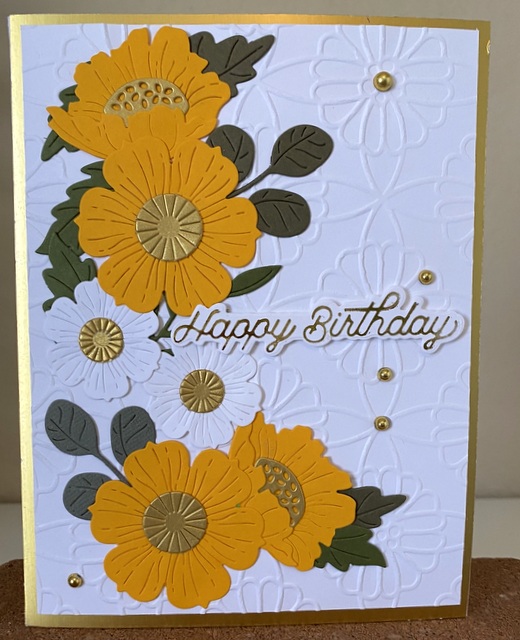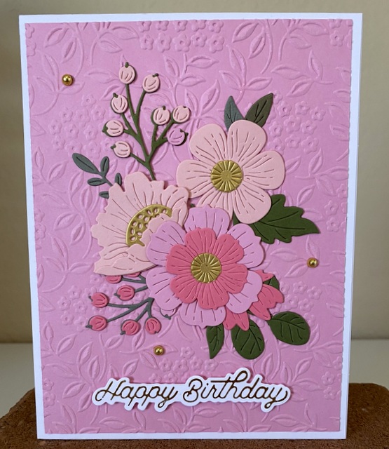 The card is 5″ by 61/2″. The embossing folder and the dies are from Spellbinders.