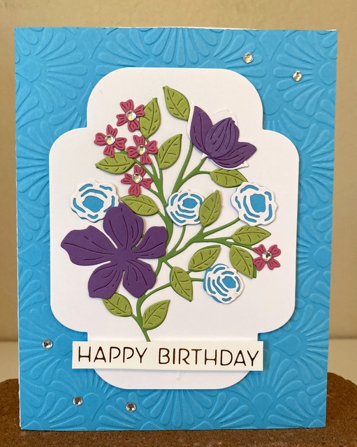 Spellbinders Happy Birthday Card #79 Jul3 The card is 5″ by 61/2″. The embossing folder and dies are from Spellbinders.