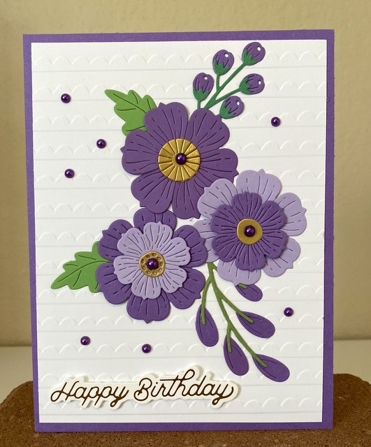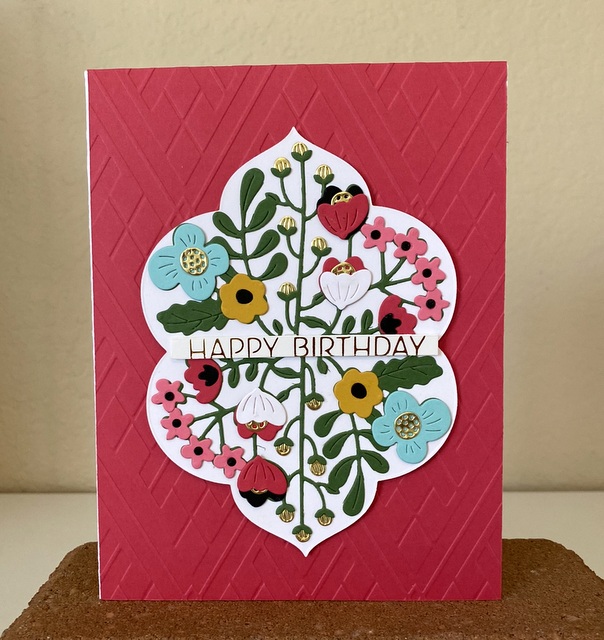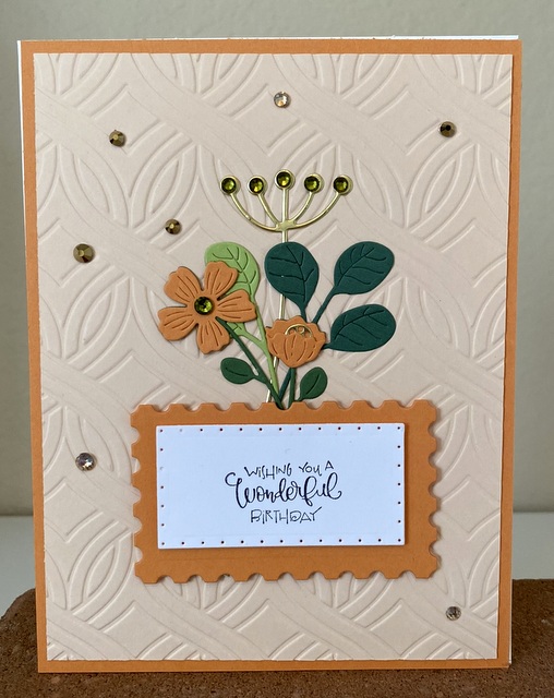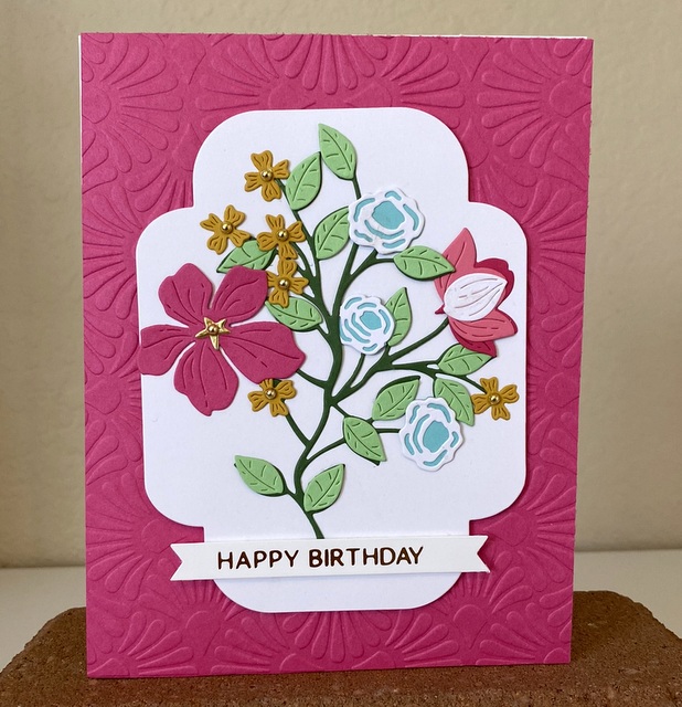 The card is 5″ by 61/2″. The embossing folder and dies are from Spellbinders.
