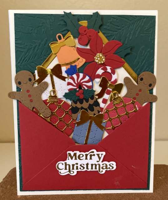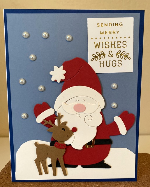 The card is 5″ by 61/2″. The dies are from the Spellbinders HOLIDAY HUGS COLLECTION BY STAMPENDOUS.