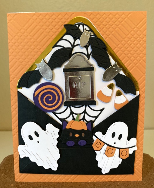 The card is 5″ by 61/2″. The embossing folder and a die from the “Envelope of Wonder Collection” is from Spellbinders. I will be posting Halloween, Thanksgiving, and Christmas now and then.