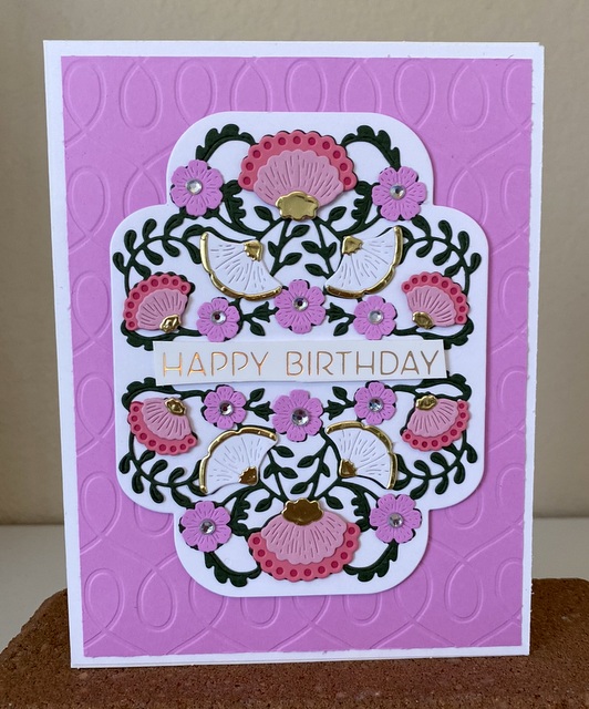 Spellbinders Happy Birthday Card #93 Aug7 The card is 5″ by 61/2″. The embossing folder and dies are from Spellbinders.