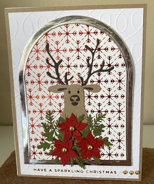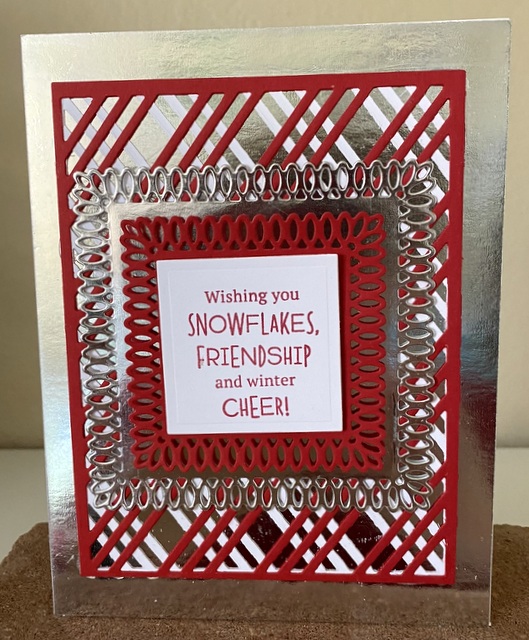 The card is 5″ by 61/2″. The embossing folder and dies are from Spellbinders.