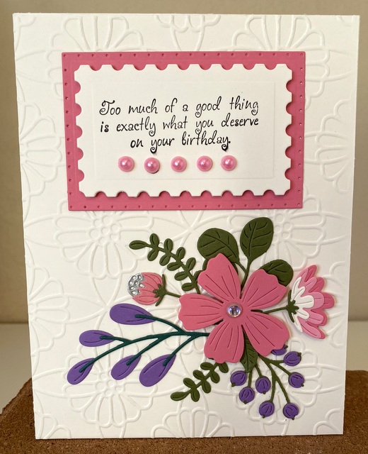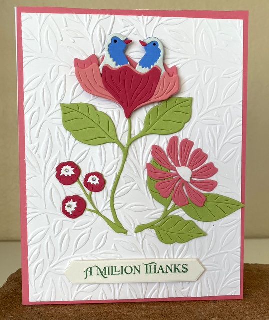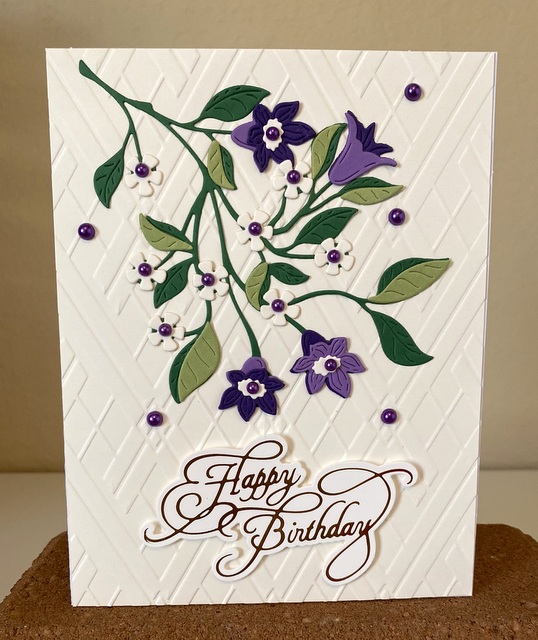 The card is 5″ by 61/2″. The dies and embossing folder are from Spellbinders.