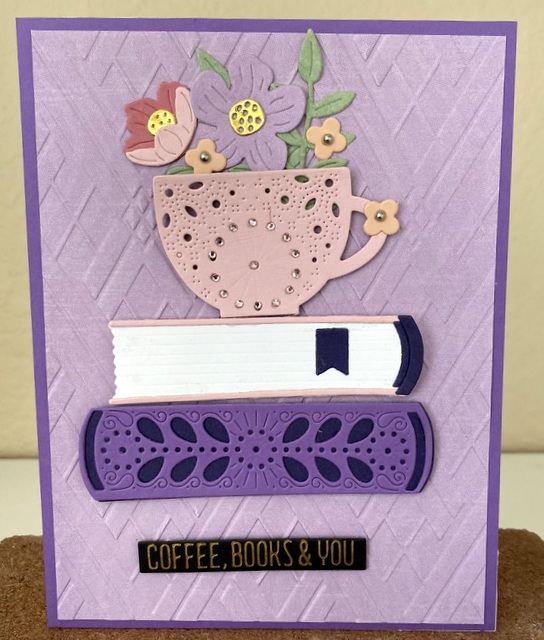 The card is 5″ by 61/2″. The embossing folder and dies are from Spellbinders.