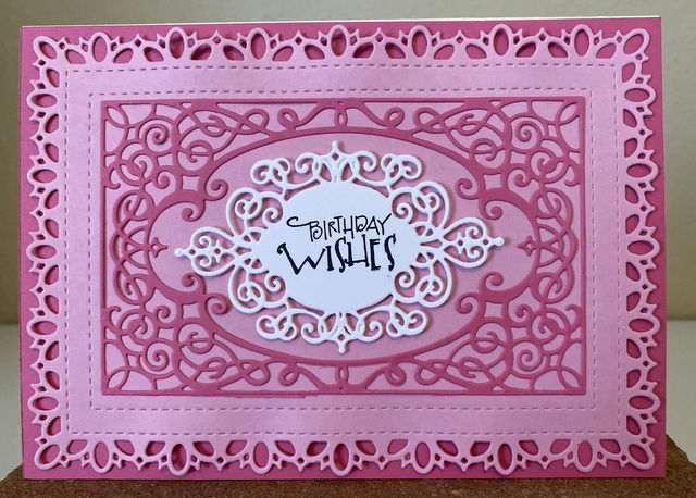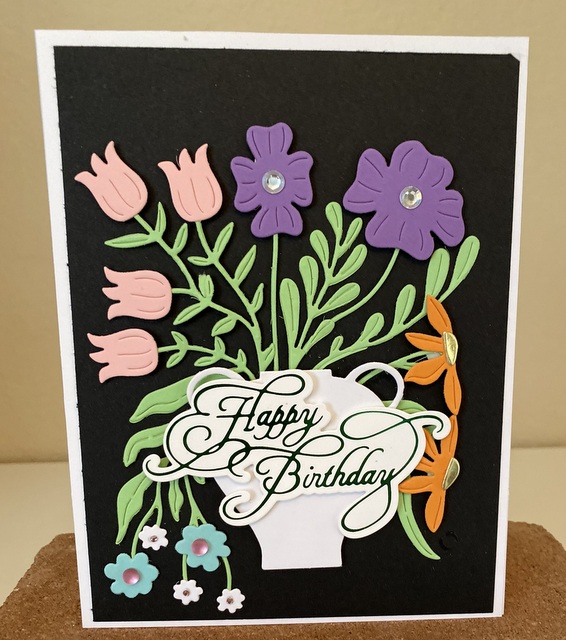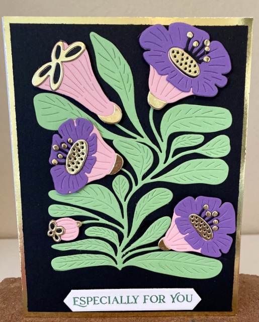 This card is 5″ by 61/2″. The dies are from Spellbinders.