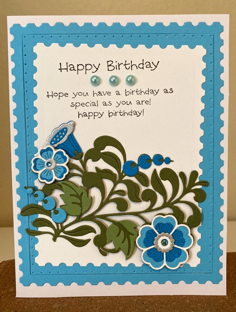 The card is 5″ by 61/2″. The dies are from Spellbinders.