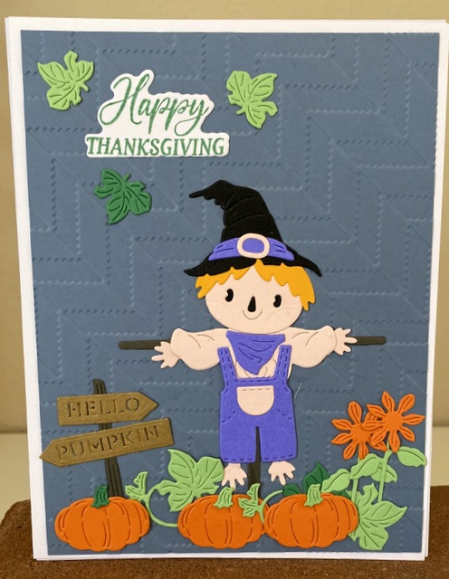 Spellbinder Thanksgiving Card Oct4 The card is 5″ by 61/2″. The embossing folder and dies are from Sept. Spellbinder dies.