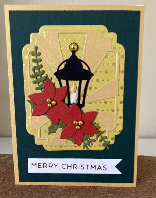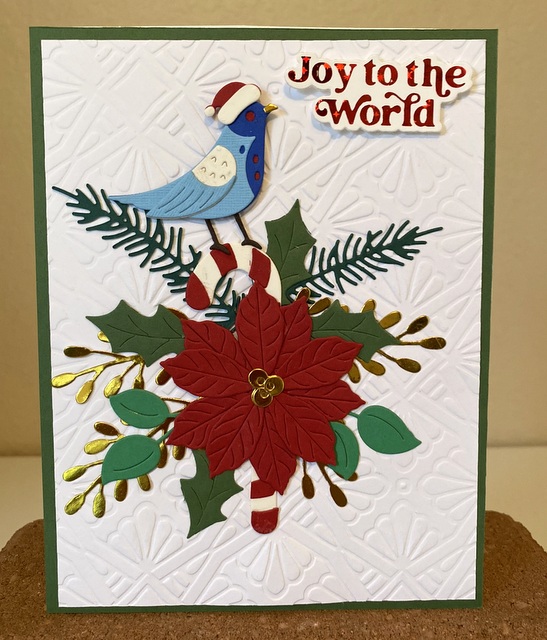 The card is 5″ by 61/2″. The embossing folder and dies are from Spellbinder.