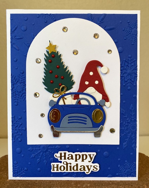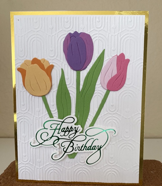 The card is 5″ by 61/2″. The embossing folder and died are from Spellbinder.