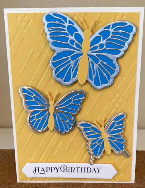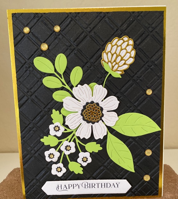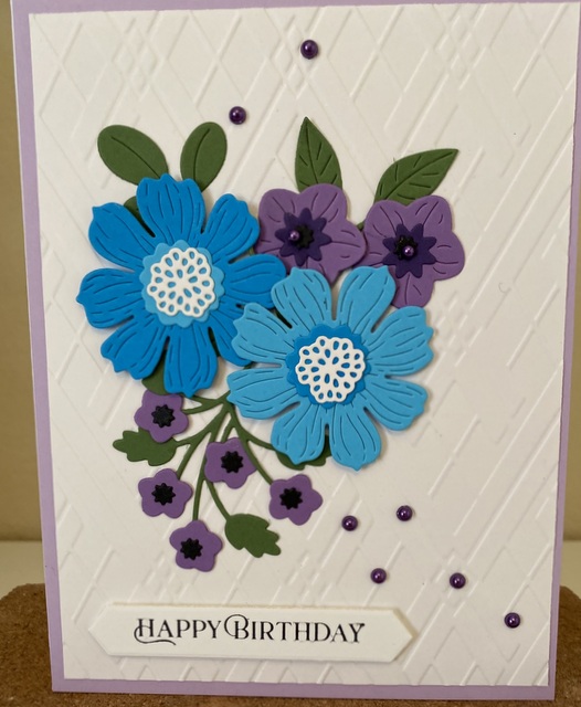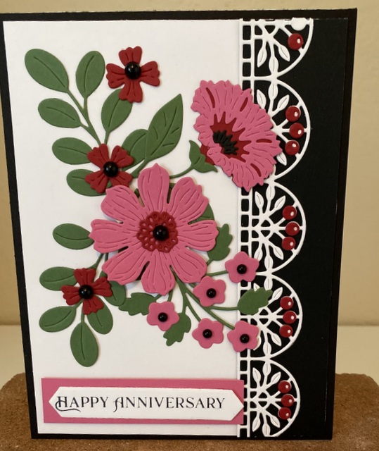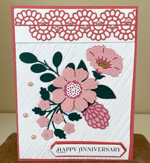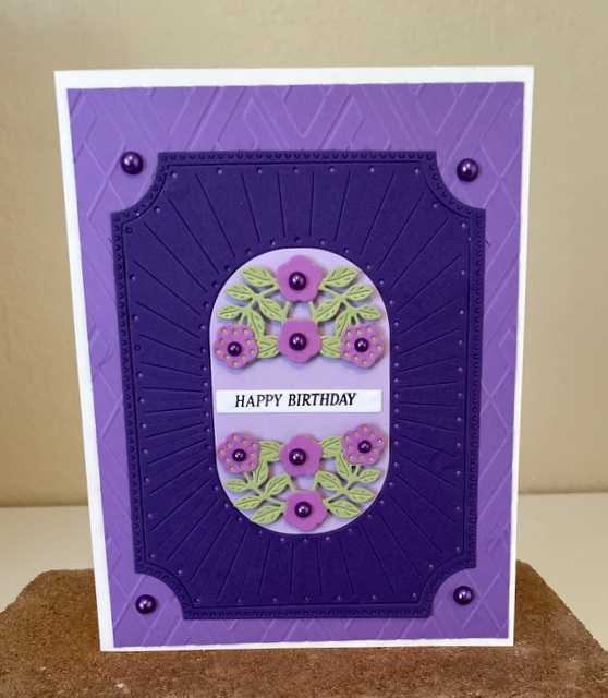 The card is 5″ by 61/2″. The embossing folder and dies are from Spellbinder.