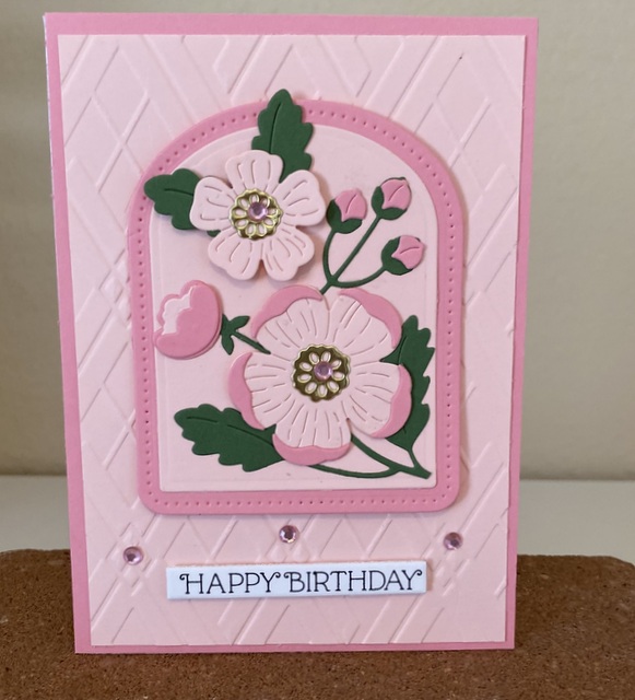 The card is 4″ by 51/2″. The embossing folder and dies are from Spellbinder.