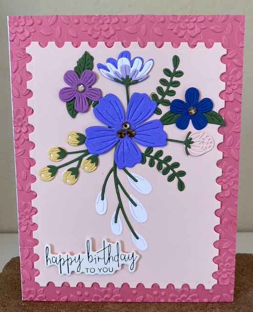 Spellbinder Happy Birthday Card Mar7 The card is 5″ by 61/2″. The embossing folder and dies are from Spellbinder.
