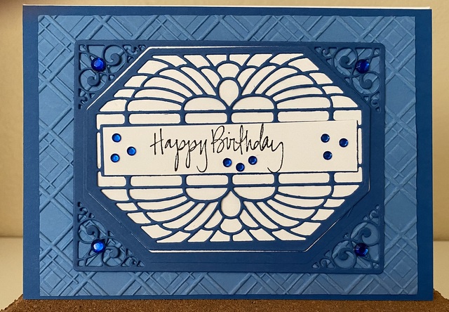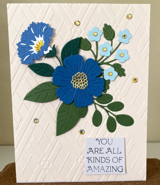 The card is 5″ by 61/2″. The embossing folder and dies are from Spellbinder.