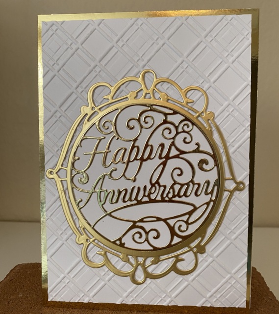 The card is 5″ by 7″. The embossing folder and dies are from Spellbinder.